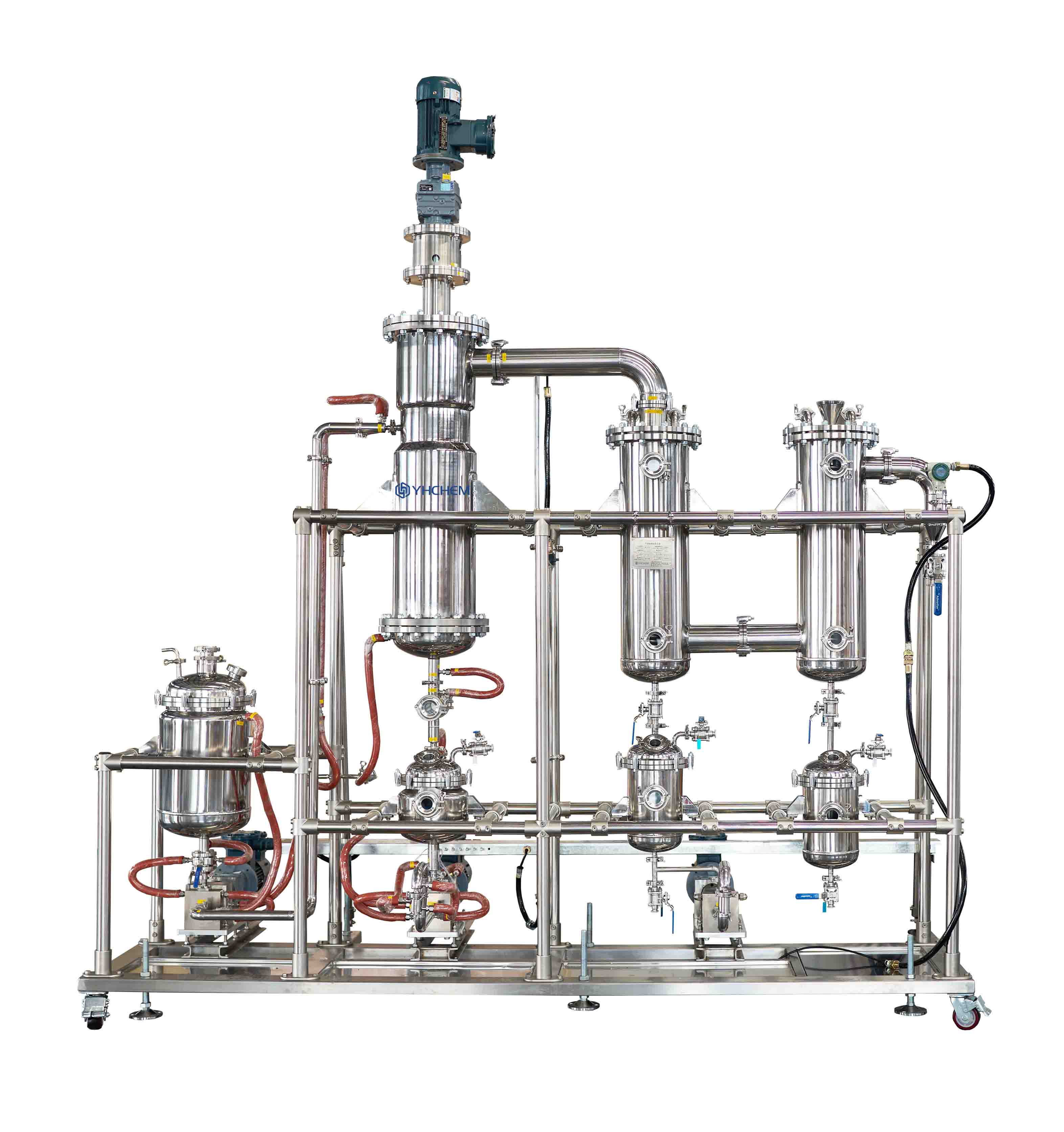 可作为分子蒸馏的前处理或独立单元,用于香料的初步浓缩、溶剂脱除或中低真空下的分馏,与短程蒸馏系统形成灵活完整的工艺组合。